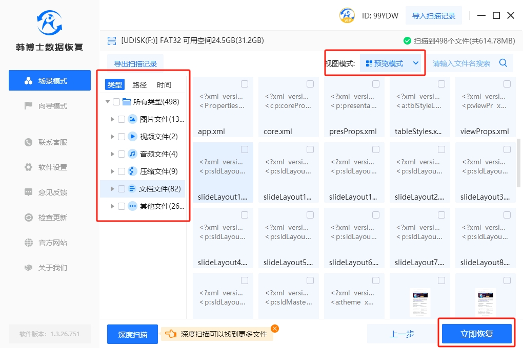 4. 在文件掃描完成后,點擊“預覽”是非常重要的一步,這可以幫助您判斷文件是否能夠成功恢復。確認無誤后,再點擊“立即恢復”。