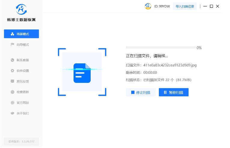 3. 系統即將開始識別和掃描文件,大家請耐心等待,不要進行任何手動操作,這樣可以確保操作順利進行。