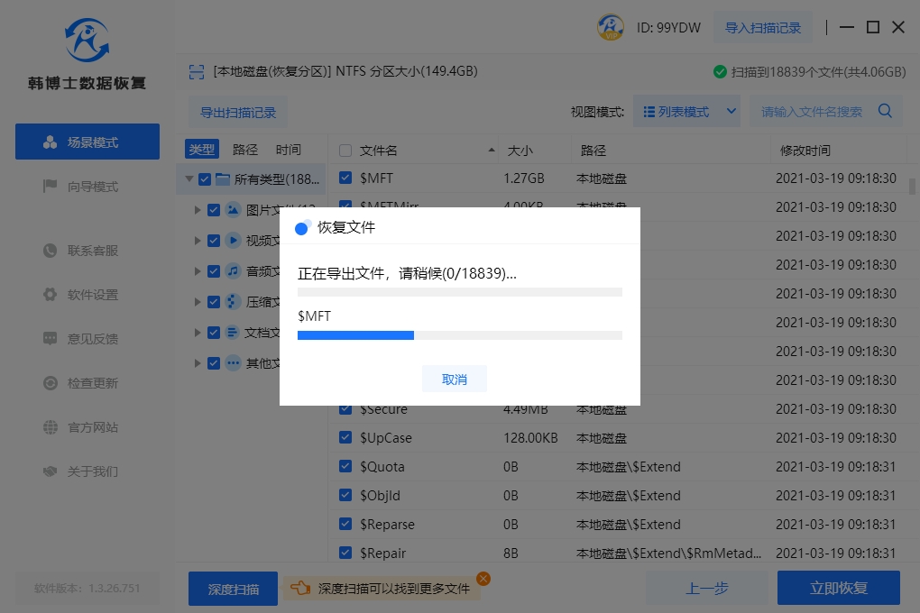 除此之外,韓博士數(shù)據(jù)恢復(fù)軟件還具有高效快速的特點。它采用先進的掃描算法,能夠快速掃描硬盤并準確找回丟失的文件,節(jié)省我們的時間,提高數(shù)據(jù)恢復(fù)的效率。