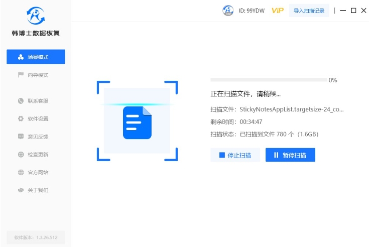 3. 韓博士正在掃描硬盤(pán)數(shù)據(jù),您不必動(dòng)手操作,只需耐心等待掃描完畢。等掃描結(jié)束后,挑選您需要恢復(fù)的文件,然后點(diǎn)一下“立即恢復(fù)”,這樣就可以了。