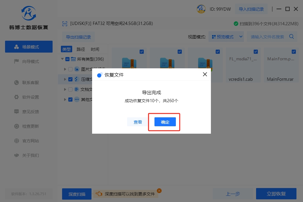 6. 數據成功恢復后,韓博士會提示完成,點擊“查看”按鈕,找到已成功恢復的文件。