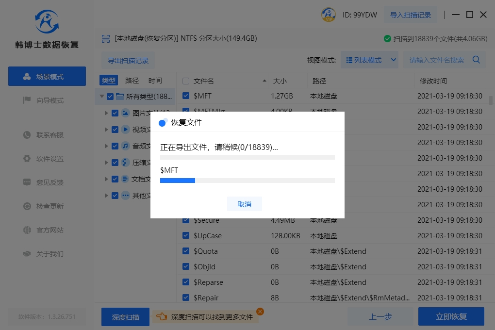 5. 在數據恢復和導出這個步驟,韓博士將自動完成這個過程,全程無需用戶手動操作。