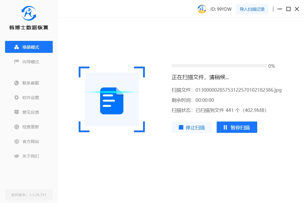 3. 然后,系統就會自行進行文件的識別和掃描,大家不需要什么動手操作,只需靜候操作完成就行了。
