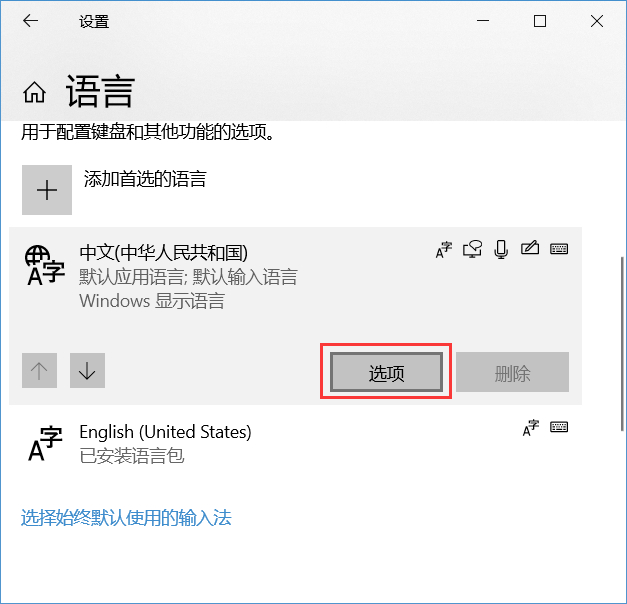 1.按下win+I調出設置窗口,隨后搜索“語言”并打開“編輯語言和鍵盤選項”進入。