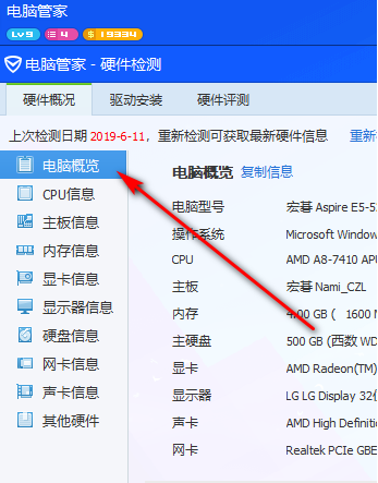當然,我們也可以用騰訊電腦管家之類的軟件進行查詢,打開工具箱,開始進行“硬件檢測”。
