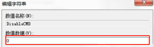 2.雙擊打開“DisableCMD”,最后將數值數據改為0并保存設置。