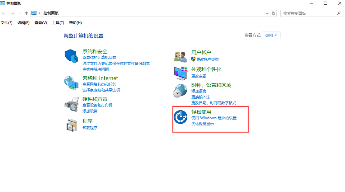 5.如果驅動程序更新之后無法進行解決問題,大家需要打開控制面板,選中輕松使用進入。