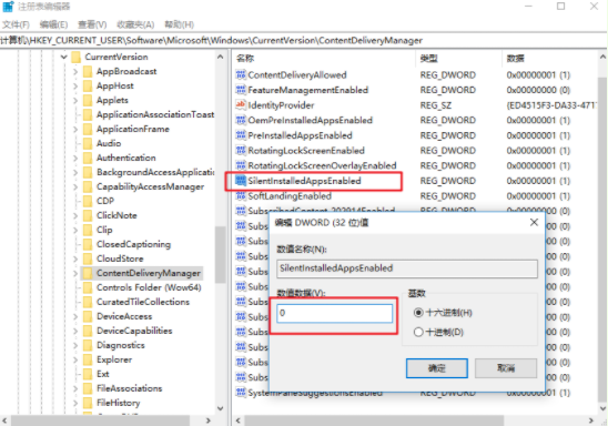 3.如果找不到以上的數據,直接進行新建后命名為SilentInstalledAppsEnabled,按照以上步驟操作即可。