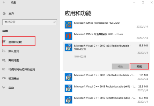 5.找到應用和功能,開始卸載那些安裝的游戲跟軟件即可。