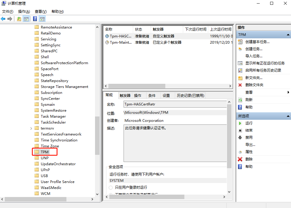 2.這時候需要大家按照圖中所示依次展開任務\任務計劃程序庫\microsoft\windows\tpm