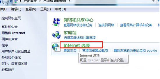 2.在打開的界面中選擇網絡和internet中的internet選項進入。