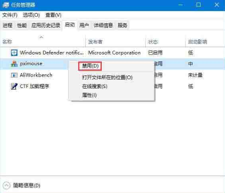 3.在任務(wù)管理器界面中右鍵選中該進(jìn)程,隨后進(jìn)行禁用。