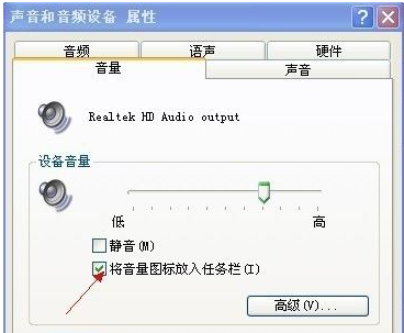2.如下圖,把 打上之后點擊確定,桌面右下腳任務欄里就會有聲音圖標了,如果調了靜音,修正后電腦就恢復聲音了。