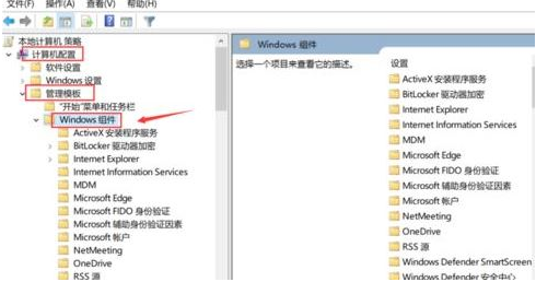 3.在左側依次打開“計算機配置”、“管理模板”和“windows組件”。