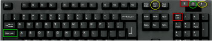 3.鍵盤上綠色方框為caps lock 大小寫鍵,紅色為數(shù)字鍵。黃色為scroll lock鍵,點擊對應(yīng)鍵盤 ,即可關(guān)閉指示燈及功能。
