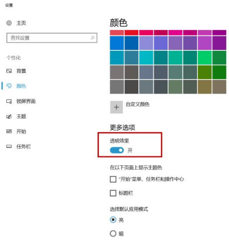 3.在右側 找到 透明效果 一欄,將其開關打開即可。