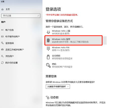 2.選擇Windows Hello指紋。