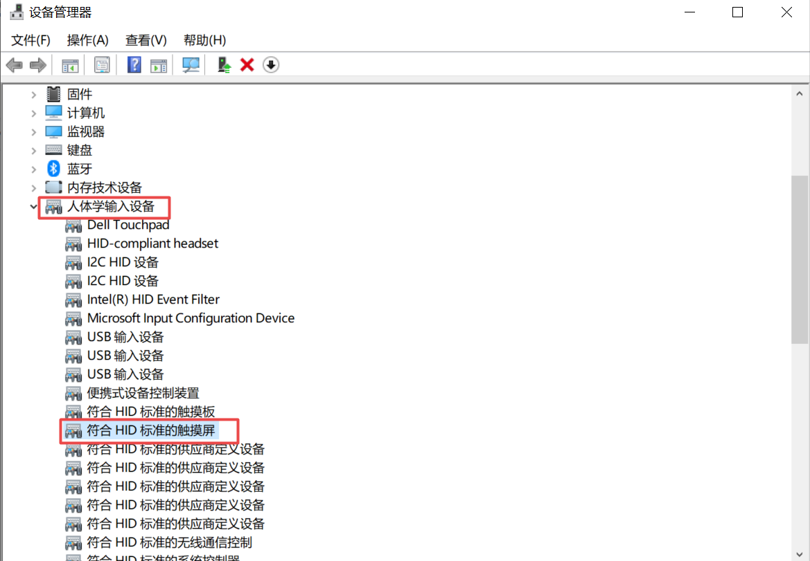 1.在開始菜單中搜索設備管理器并打開,在設備管理器下找到人體學輸入設備,并找到符合HID標準的觸摸屏這一選項。