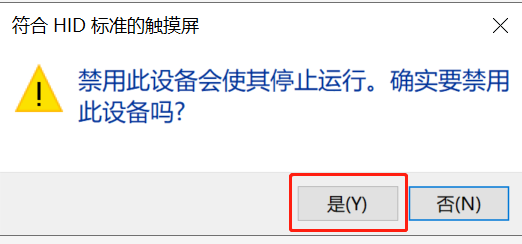 2.右擊符合HID標準的觸摸屏這一選項,點擊禁用設備,此時會彈出提醒,點擊是。完成后觸摸屏將會被禁用。