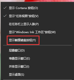 1.右鍵點(diǎn)擊任務(wù)欄空白處,點(diǎn)擊“顯示觸摸鍵盤按鈕”。