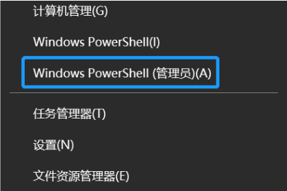 1.使用鼠標(biāo)右鍵點擊桌面左下角的開始菜單按鈕,選擇Windows PowerShell(管理員)(A)。