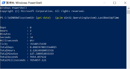 2.輸入(get-date) - (gcim Win32_OperatingSystem).LastBootUpTime,可以看到開機使用了多久