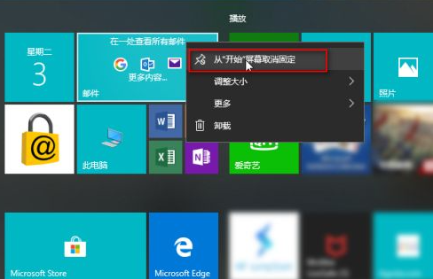 將鼠標移動到開始屏幕程序上,右鍵點擊“從開始屏幕取消固定”,這個程序的快捷方式就在這個界面上消失啦。(程序還是安裝在電腦中的)