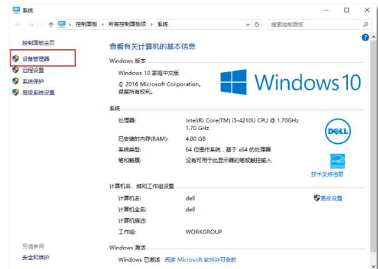 點(diǎn)擊“我的電腦”,選擇“屬性”,在打開(kāi)的窗口中點(diǎn)擊“設(shè)備管理器”。