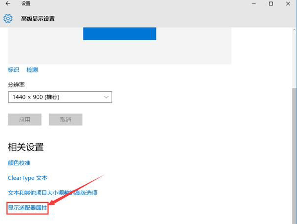 3、此時彈出高級顯示設(shè)置窗口,在最下方點擊“顯示適配器”。