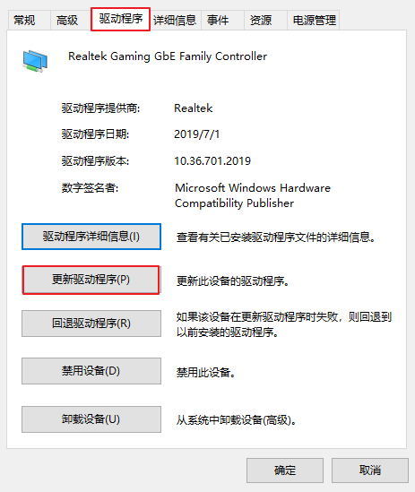 3、彈出屬性窗口,先切換到“驅動程序”下,再點擊“更新驅動程序”。