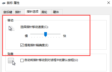 4、現在切換到“指針選項”,“指針移動速度”進行調節,并勾選“提高指針精確度”選項。