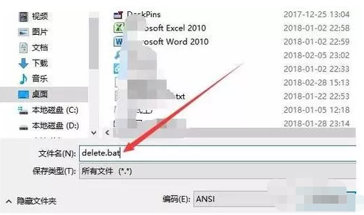 設置好文件名,比如delete.bat,(后面一定要輸入.bat擴展名),這樣才能夠生成批處理文件,可以自動運行。