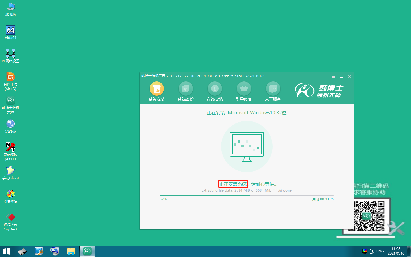 12.重啟時,韓博士將自動選擇已經重裝完成的Win 10系統進入(若未自動選擇,請手動操作),此過程無需手動。