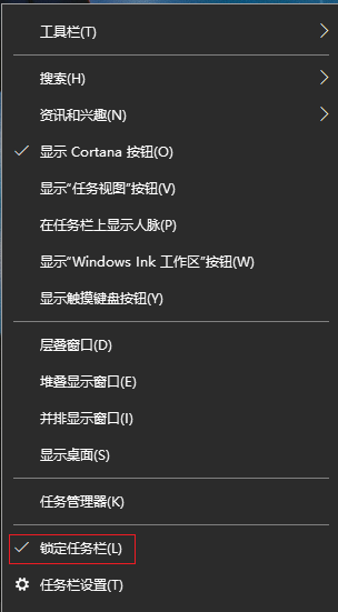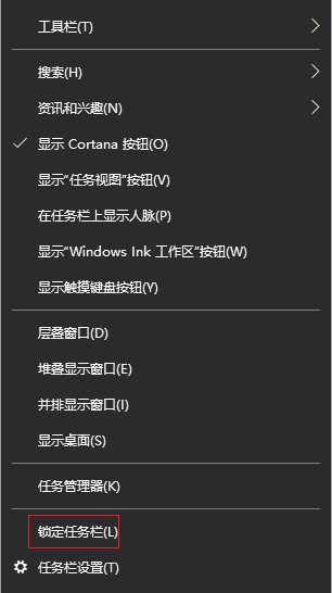 1.右擊任務欄的空白位置,如果看到【鎖定任務欄】前面有打勾,就說明任務欄已經被鎖定了