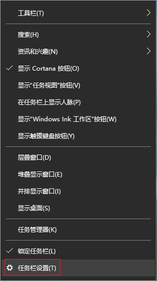 1.右鍵點擊任務欄空白處,選擇“任務欄設置”