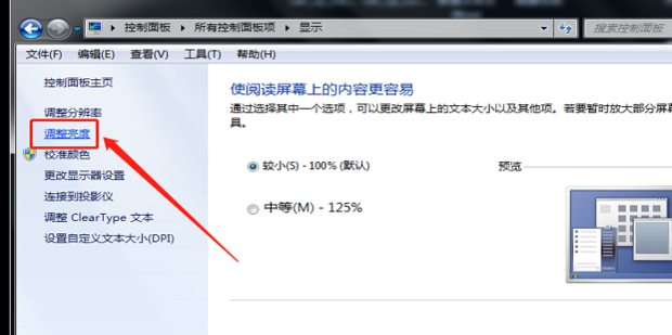 3.在彈出的顯示頁面右側點擊【調整亮度】。