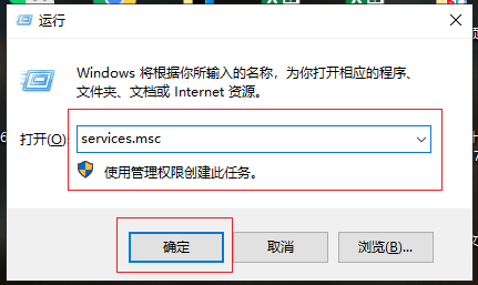 1.在鍵盤上按下【win+R】組合鍵,調出運行界面,然后在搜索框輸入“services.msc”,點擊【確定】繼續操作。