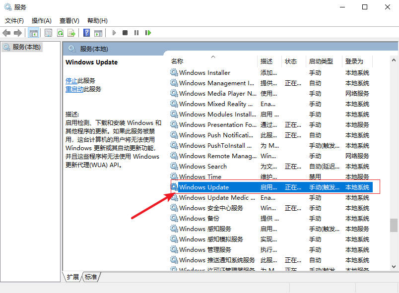 2.進入服務界面,下拉找到【Windows Update】。