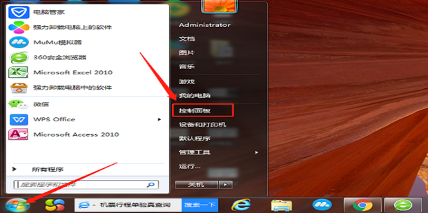 1.在鍵盤上按下【win】鍵,調(diào)出開始界面,然后選擇【控制面板】。