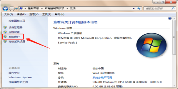 3.點(diǎn)擊【系統(tǒng)保護(hù)】。