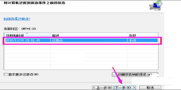 5.選擇還原點(diǎn),一般都是默認(rèn)的初始的狀態(tài),然后點(diǎn)擊【下一步】。