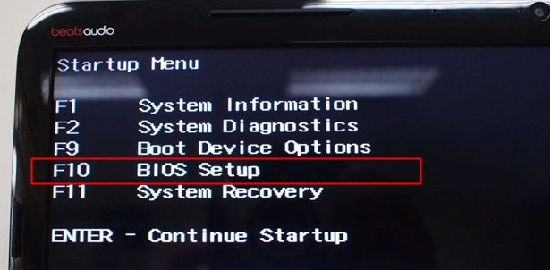 2.進(jìn)入到啟動(dòng)菜單選項(xiàng),F(xiàn)10 BIOS Setup就是BIOS設(shè)置,此時(shí)按下F10鍵就可以進(jìn)入BIOS。