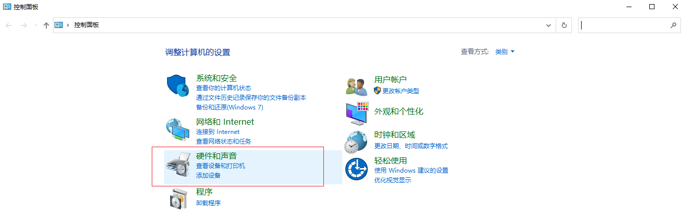 3.在控制面板界面選擇【硬件和聲音】,接著點擊【電源選項】。