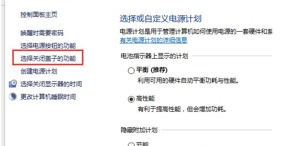 4.在電源選項界面的左側選擇【選擇關閉蓋子的功能】,然后點擊【更改當前不可用的設置】。
