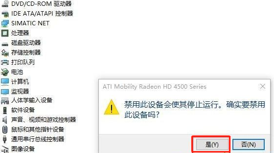 4.接著系統(tǒng)會(huì)提示設(shè)備將停止運(yùn)行,點(diǎn)擊【是】按鈕,這樣集成顯卡就被禁用了。