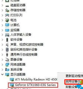 5.最后是手動(dòng)啟動(dòng)獨(dú)立顯卡,右鍵單擊獨(dú)立顯卡,選擇【啟用設(shè)備】即可。