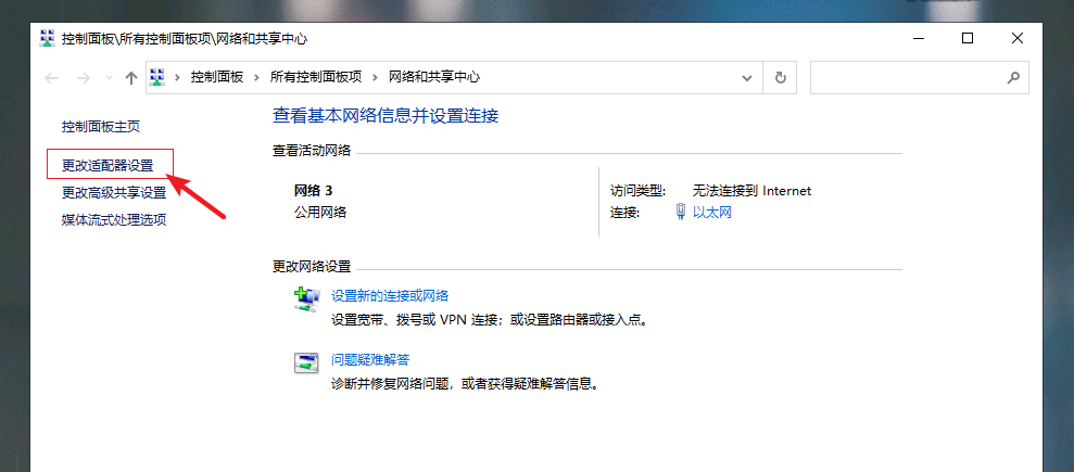 2.進入后在左側選擇【更改適配器設置】。