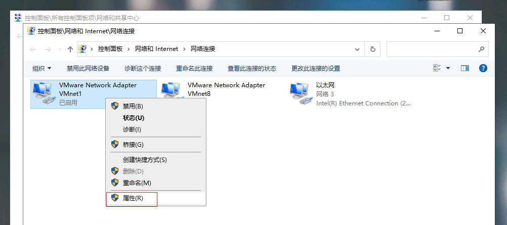 3.選擇正在使用的網絡,右鍵選擇【屬性】。