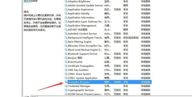 2.進(jìn)入后點(diǎn)擊【Computer Browser】服務(wù)查看是否正常啟動,否則修改為【啟動】