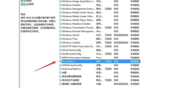 3.接著找到【workstation】服務(wù),查看是否正常運(yùn)行,否則修改為【啟動】